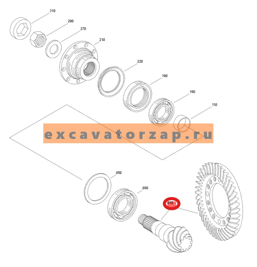Главная пара ZGAQ-08225 (аналог, Турция) переднего, заднего мостов экскаватора HYUNDAI R170W-3, R170W-3, R1700